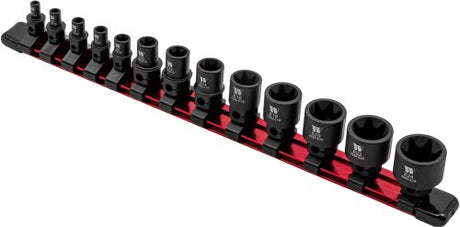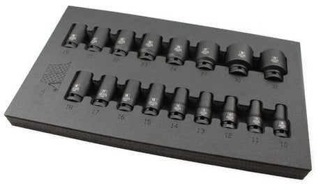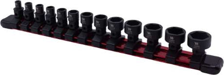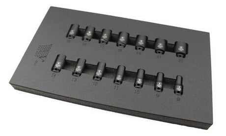 Dados de impacto; Juego de 15 piezas extra cortas con vástago hexagonal de 1/2'' de 10 a 24 mm