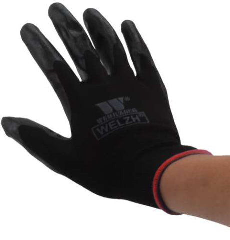 Guantes de poliéster recubiertos de nitrilo para mecánicos; 100 pares talla 10 (XL)