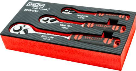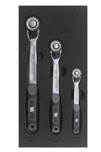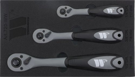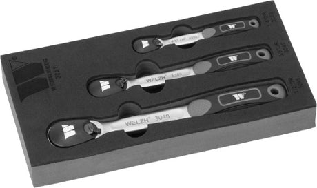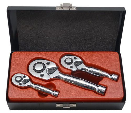 Juego de Carraca; 3 Piezas con Cabeza Flexible Corta; 1/4'', 3/8'' y 1/2''dr