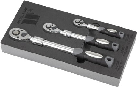 Juego de Carraca; 3 Piezas con Cabezal Telescópico y Flexible
