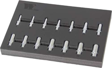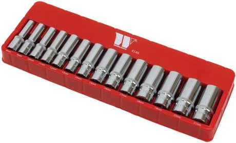 Juego de Dados Profundos, 14 Piezas 3/8'' de Carraca Suministrado en Bandeja de Espuma