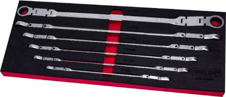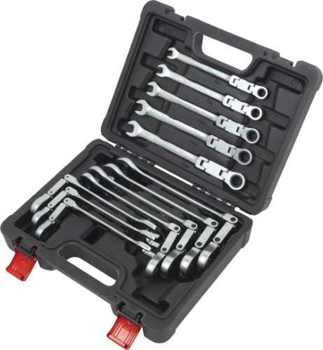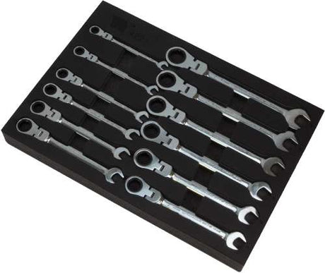 Juego de Llaves de Carraca con Cabeza Flexible; 12 Piezas 8-19 mm, Bandeja de Espuma EPE