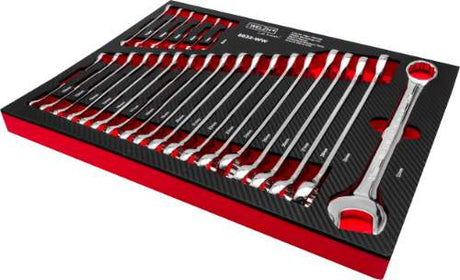Juego de Llaves de Carraca; 12 Piezas 8-19 mm, Bandeja de Espuma EPE