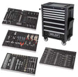 Carro de Taller Profesional de 8 Cajones + Bandeja para Herramientas; Juego de Destornilladores, Destornilladores Torx y Surtido de 32 Piezas + Bandeja para Herramientas; Surtido de Alicates Múltiples + Bandeja para Herramientas; Juego de Carraca, Dados y Extensiones de 1/2'', 3/8'', 1/4'' + Bandeja para Herramientas; Surtido de Dados Torx, Spline y Hexagonales