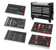 Estas resistentes bandejas de espuma estándar de la industria están precortadas y llenas con una variedad de herramientas que incluyen: