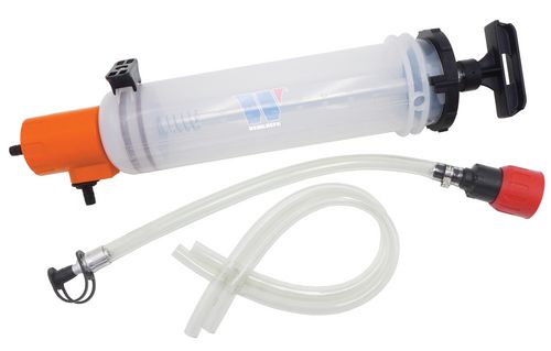 Incluye dos válvulas; una válvula de cierre para transferir fluidos y una válvula sifón con mangueras de entrada y salida, ideal para la extracción de anticongelante.