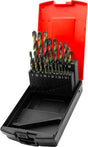 Cuenta con brocas rectificadas con precisión en tamaños: 1, 1.5, 2, 2.5, 3, 3.5, 4, 4.5, 5, 5.5, 6, 6.5, 7, 7.5, 8, 8.5, 9, 9.5 y 10 mm. Fabricadas en acero rápido HSS 4241 con cobalto para una durabilidad superior y un rendimiento prolongado.