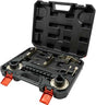Contiene herramientas vitales para el ajuste y bloqueo del motor, así como para la configuración de la posición de las unidades de distribución variable del árbol de levas. Este juego es esencial para mantener la precisión de la correa de distribución durante el mantenimiento del motor.